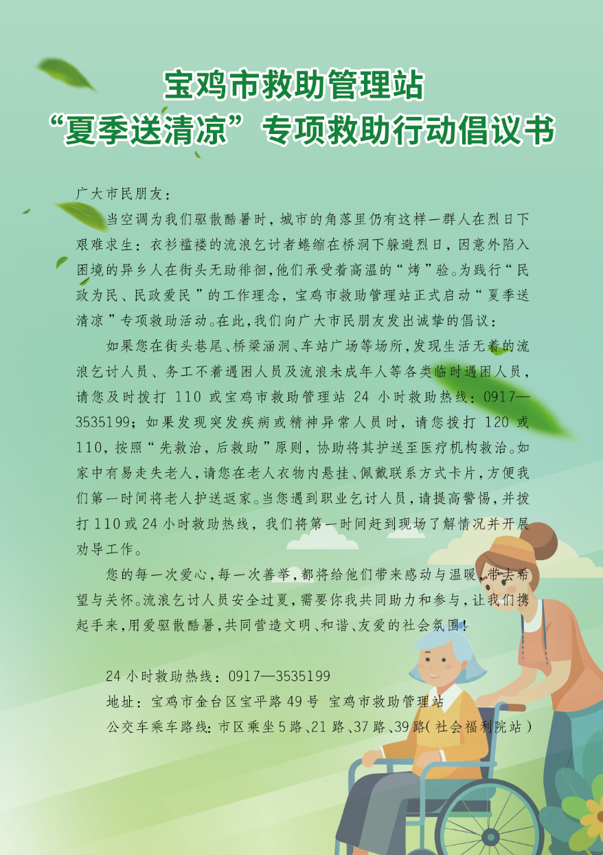 宝鸡市救助管理站“夏季送清凉”专项救助行动倡议书
